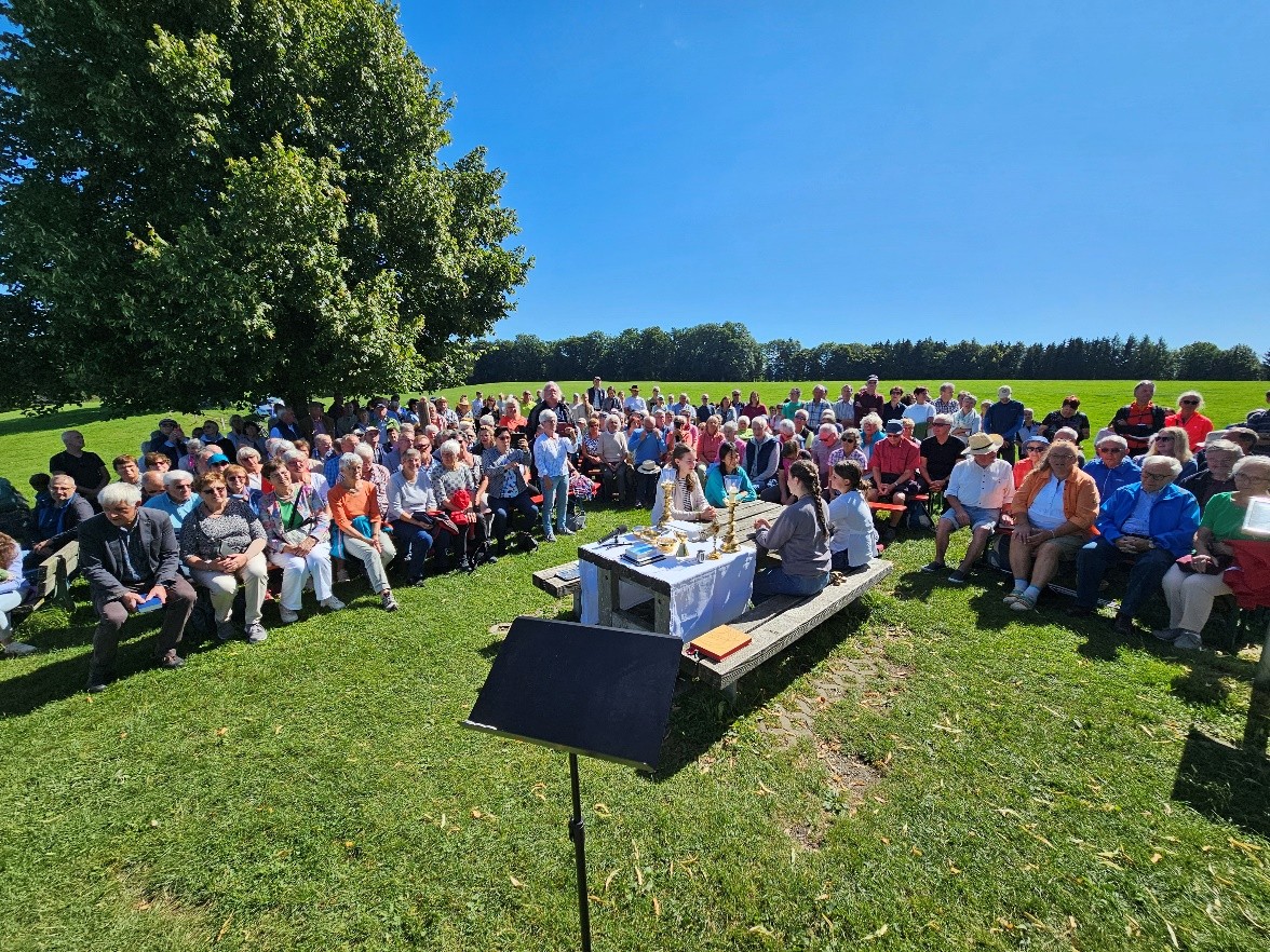 Bei bestem Wetter, toller Aussicht, wohlklingender Musik, wunderbarer Gemeinschaft und bester Organisation durften wir am Sonntag, 31. August 2025, wieder unsere Bergmesse auf der Süh feiern. Es war großartig in jeder Hinsicht. Über 300 Kinder und Erwachsene waren gekommen zum Singen, Beten, vor allem um sich vom Wort Gottes ermutigen und im Mahl der Liebe beschenken zu lassen.