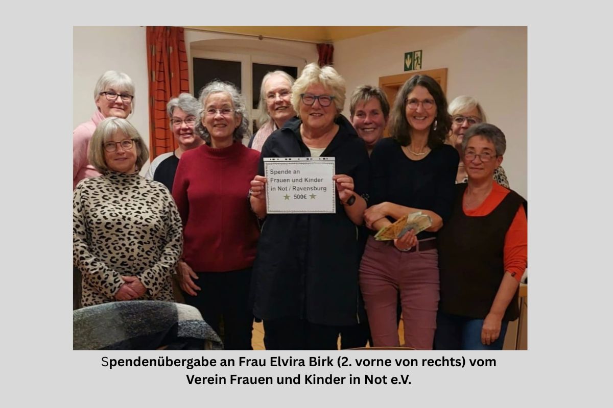 Die Frauen des „Strickcafés“ der Kath Kirchengemeinde St. Anna in Vogt starteten im Frühjahr 2025 eine Mitmachaktion zum Thema „Wärme spenden“. Viele Frauen des Strickcafés waren an dieser Aktion beteiligt und strickten Wärmflaschenhüllen für kleine „Bettfläschle“. Diese bestrickten „Bettfläschle“ wurden beim Frauenfrühstück im Herbst 2025 verkauft. Der Erlös in Höhe von 500,00 € übergaben die Frauen vor einigen Tagen als Spende an Elvira Birk, Mitarbeiterin beim vom Verein Frauen und Kinder in Not e.V.